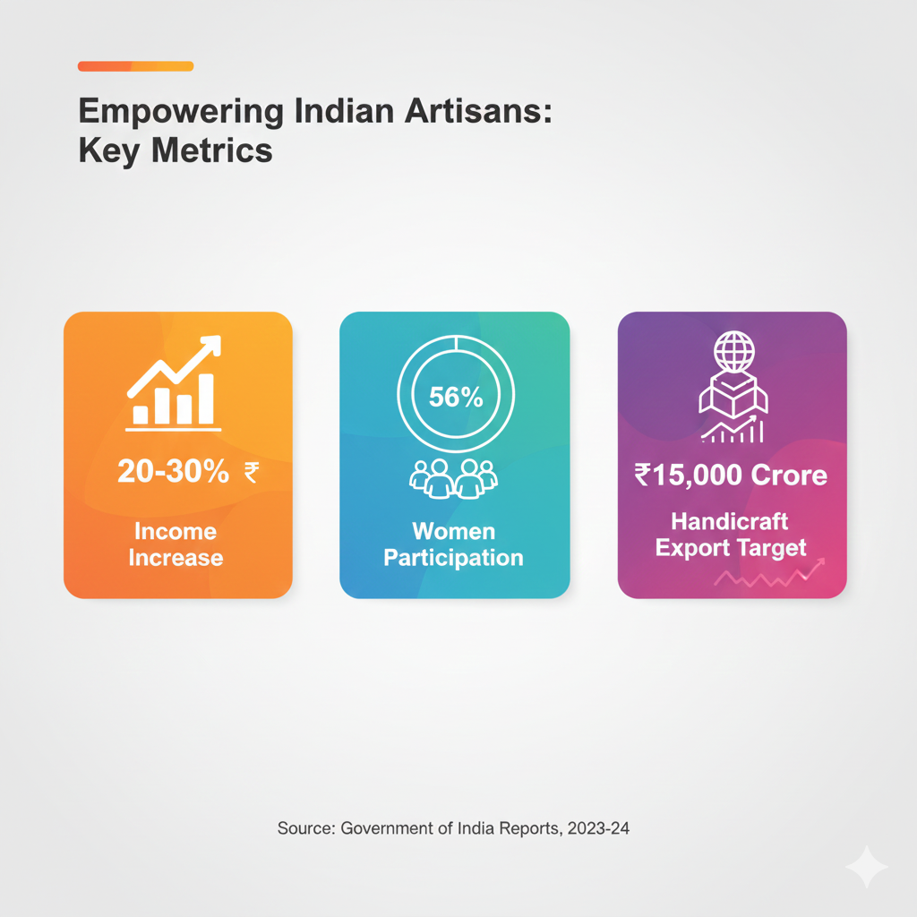 The initiative also places itself within India’s broader national economic strategy. By empowering these micro-entrepreneurs and enhancing their market access through technology, the program supports the national goal of achieving Rs 15,000 crore in handicraft exports in FY25 [Image 2]. This success story provides a positive model for leveraging technology for grassroots economic upliftment.